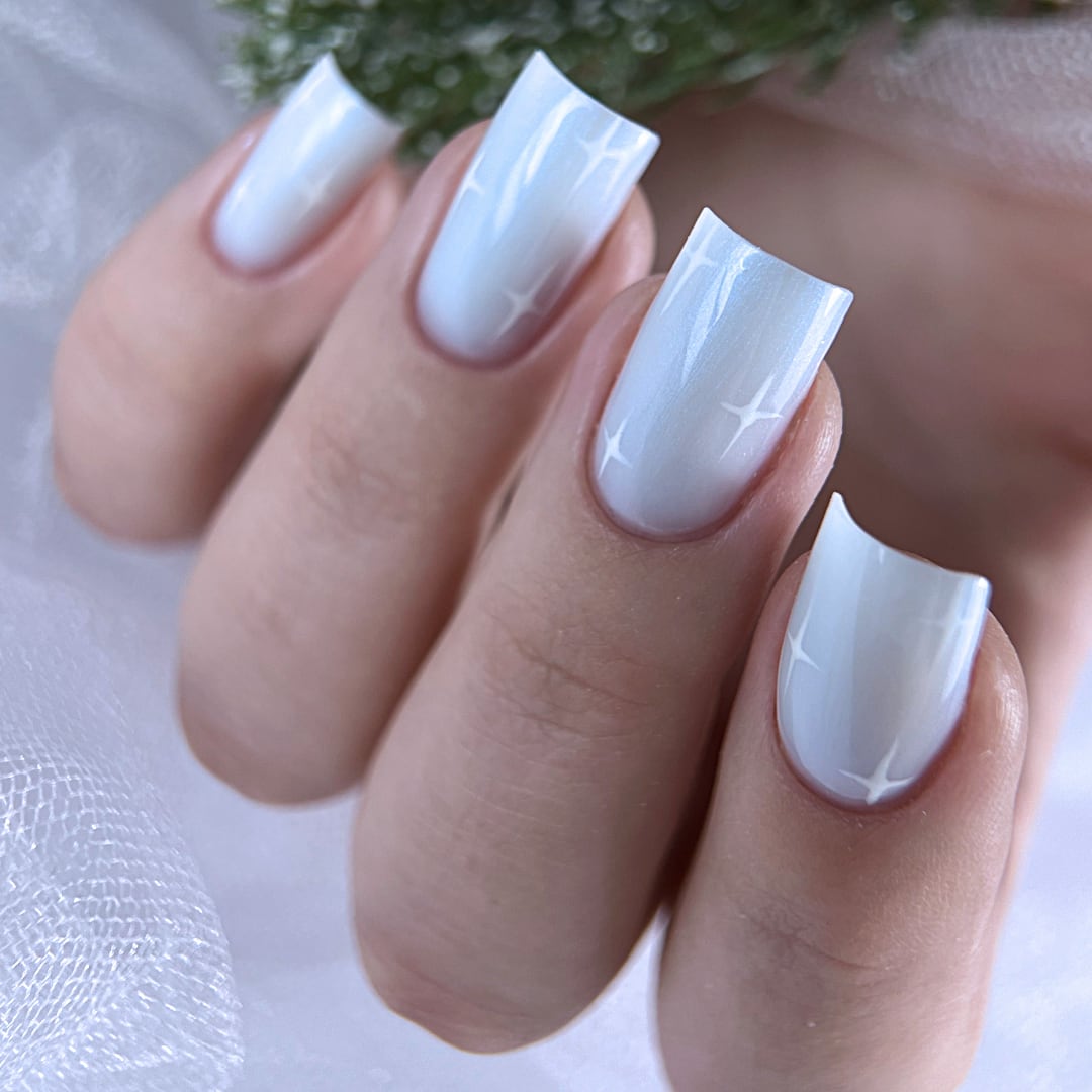Elevate your nail game with our Magic Top No. T007. This UV/LED Top Coat with Blue Shimmer features a soft blue pearlescent shimmer, adding a unique and fashionable touch to any manicure or pedicure. On lighter tones, it creates a gentle, pearlescent glow, while on darker shades, it transforms into a striking, iridescent blue. Apply it over any color to create a fresh, dazzling look. Experience long-lasting wear and nail protection with this high-quality top coat.